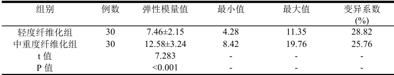 弹性模量值明显高于轻度纤维化组。见表2。