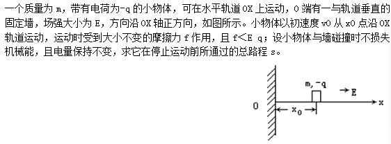 由于 f〈E q,所以这个小物体只要不靠墙,都不可能平衡,则小物体最终只可能静止在靠墙的位置。这样一来,小物体的动能和电势能都减小了,根据能量的转化和守恒,并考虑物体运动全程有: