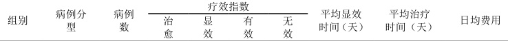 疗效指数=(治疗前疾病评分-治疗后疾病评分)/治疗前疾病评分 *100% 治愈:疗效指数≥95.0%;显效:95.0%>疗效指数≥60.0%;有效:60.0%>疗效指数≥30.0%;无效:疗效指数<30.0%4.2 平均治疗时间