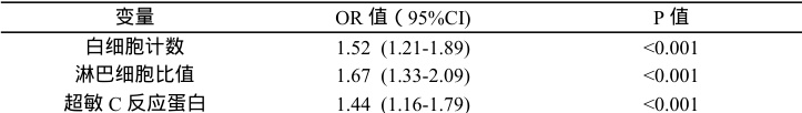 预测模型显示,白细胞计数、淋巴细胞比值和超敏 C 反应蛋白是最重要的预测变量。模型的敏感性和特异性分别为 80.5% 和 78.9% ,具有较高的临床应用价值。