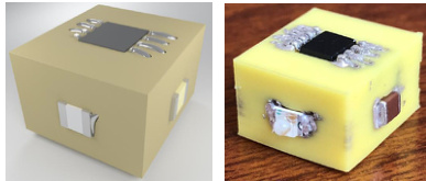 3D 直写打印制造功能性结构电子的设计流程和制造流程分别如下图5 和图6 所示。传统 2D 平面 PCB 的设计软件有 Proteus、DipTrace、Solidworks PCB、Mentor Graphics、Protel、Altium Designer 等,但无法实现 X、Y、Z 三轴的自由互联。Gilbert T. Carranza 等人通过 3D 设计软件 DipTrace 同时实现电路原理图设计和 CAD 空间结构设计[19]。通过元器件的分布、电路的互联、绝缘介质填充三步完成 3D 功能性结构电子的设计,而内部的线路使用nScrypt 3Dn 型号的混合3D 打印机,所有线路和绝缘介质通过逐层打印方式实现。其中,绝缘介质为 ABS树脂,通过而线路材料为导电银胶。设计原型和实物对比如下图7 所示。
