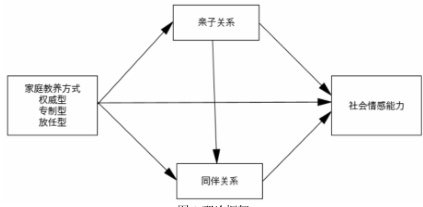 H3:同伴关系在家庭教养方式与乡村中小学生社会情感能力间起中介作用。