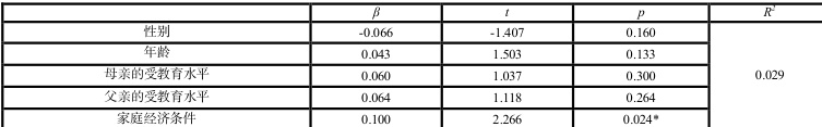 表4 乡村中小学生社会情感能力的回归分析