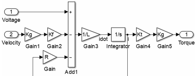 同理,可以根据(2)式建构电机的仿真模型,如图 2 所示: