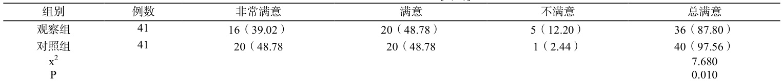 观察组护理总满意率高于对照组( P<0.05 )。见表 1。