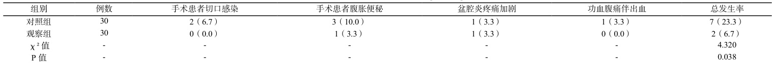 观察组并发症以轻度腹胀、盆腔炎短暂疼痛反复为主,发生率显著低于对照组(P<0.05)(表3)。