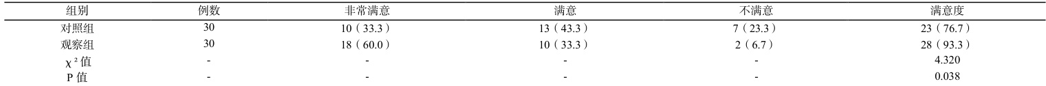 观察组“非常满意”占比更高,满意度显著高于对照组(P<0.05)(表4)。