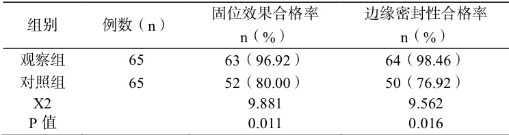 对比两组修复后固位效果及边缘密封性的合格率。