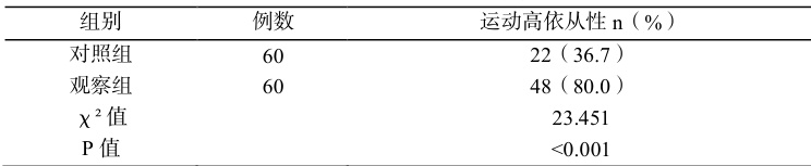 表 2 运动依从性比较 [n(%)]