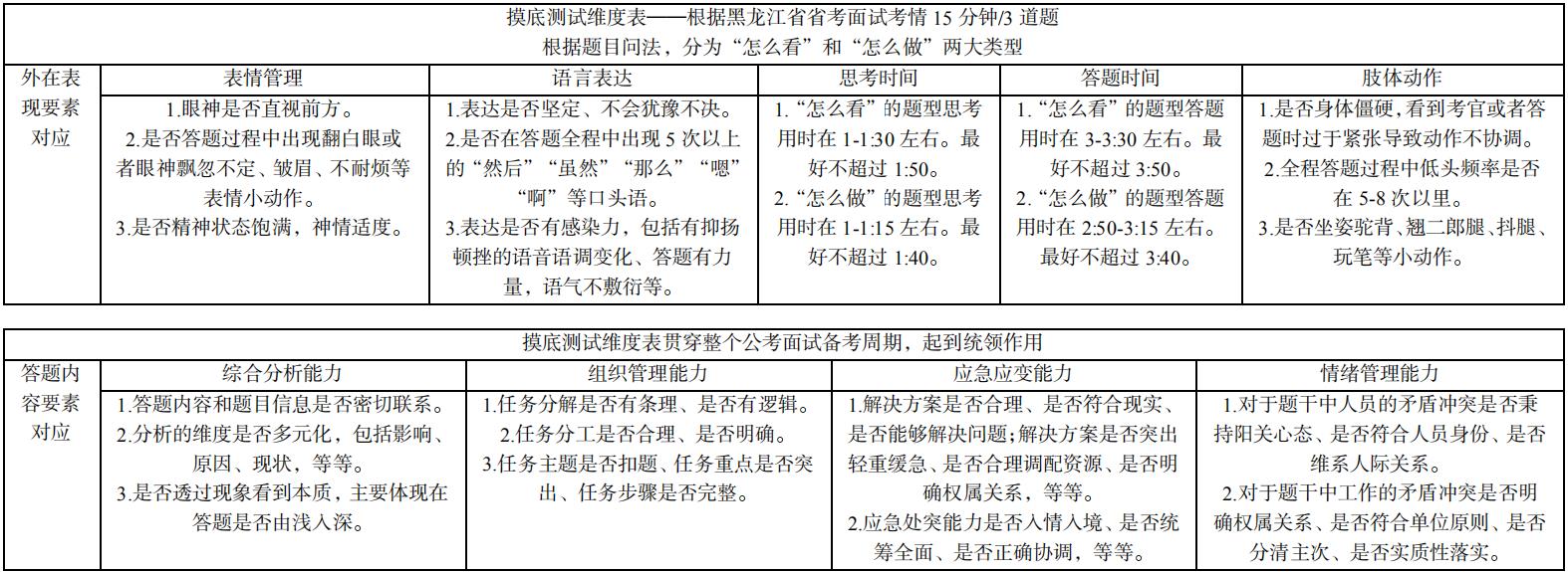首先,诊断性评价在公考面试学习中起到的摸底作用,具体操作如下:考生在知晓自己的面试考情之后,在系统学习之前可以先进行摸底测试,以此了解自身面试水平的优缺点,起到个性化摸底的作用。比如,在2025年黑龙江省公务员考试公告中,明确提及到采用结构化面试方式,按照省市级综合管理类、县乡级综合管理类、行政执法类三个类别分别确定考试内容。根据考试公告内容,考生可以在网络或者学习APP上自行查找往年黑龙江省省考面试题目类型,优先摸底测试2023年-2025年省考真题,考生通过这3年真题的答题情况,得出对于“外在表现”“答题内容”这两大方面的摸底测试结果,进而得出自身的摸底水平。