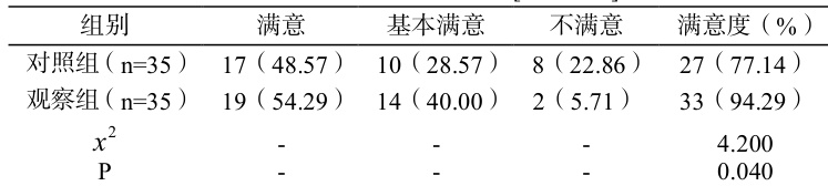 表 2:两组护理满意度对比 [n/ (% )]