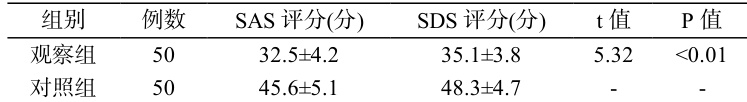 表 1 心理状态改善效果对比(SAS/SDS 评分)