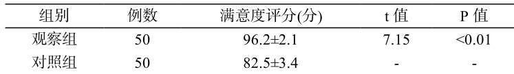 观察组满意度 96.2±2.1 分 vs 对照组 82.5±3.4 分( P<0.01 )。