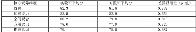 从表中可以看出,实验前两个班学生在各核心素养维度上的平均分差异不显著