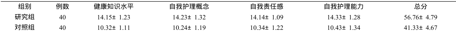 见表2 对比两组自我效能比较(