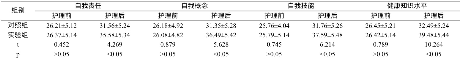 1.3.1 对比两组患者的自我管理能力以及患者对疾病相关知识的掌握度。