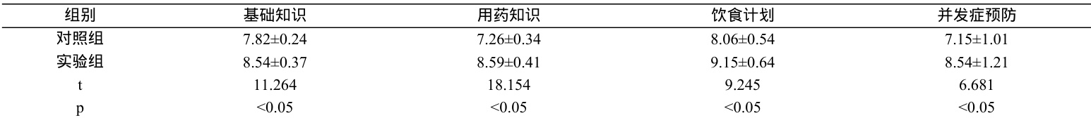 2.2 实验组患者对疾病相关知识的掌握度更高, p<0.05