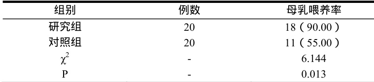 相较于对照组,研究组的母乳喂养率明显更高,差异具有统计学意义( P<0.05λ 。见表2。