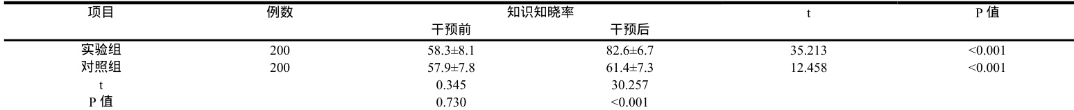 表 3 两组患者干预前后知识知晓率比较