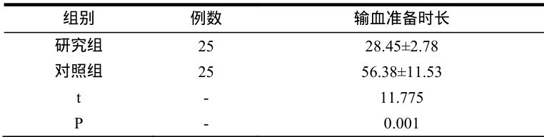 对比两组的输血准备时长,自临床医师提出输血申请指令起,至实际开始为患者执行输血操作这一完整时间区间。