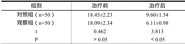 观察组患者症状评分总分低于对照组,差异明显( ρP<0.05 );见表 1