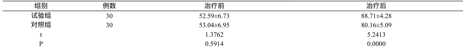 表2 内的sf-36 数据:治疗前,差异不显著( P>0.05 );治疗后:试验组的得分高于对照组( ρP<0.05 )。