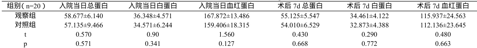 表2 术后营养情况(