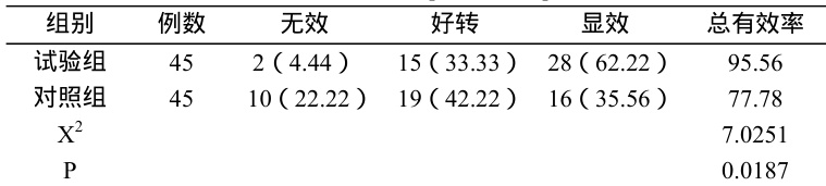 表1 内的疗效评定结果:试验组高于对照组( ρP<0.05 )。