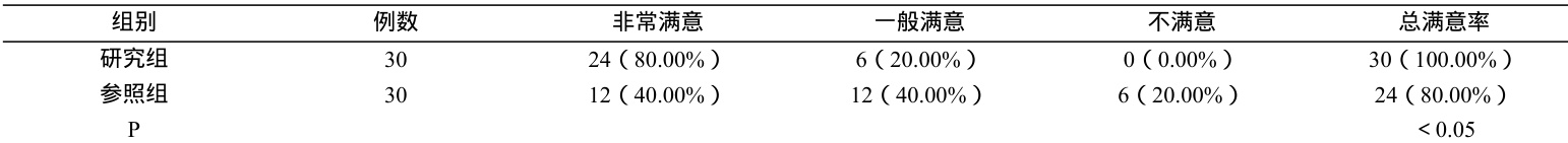 2.1 两组患者满意度对比:研究组各项满意度显著高于参照( P<0.05) 见表 1。
