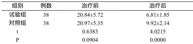 76 名病例都是无药敏史且病历资料完整的白癜风病人,截取时间 2023 年5 月-2025 年4 月。以抛硬币法均分76 名病人:试验组(男21 人、女17 人)年龄跨度 20-65,均值( 37.29±4.08⋅ )岁;病程跨度 6 个月-15 年,均值( 4.28±0.91 )年。对照组(男22 人、女16 人)年龄跨度19-65,均值( 37.74±4.39 )岁;病程跨度 6 个月-14 年,均值( 4.17±0.86 )年。各组一般资料之间存在的差异不显著( ρP>0.05 )。