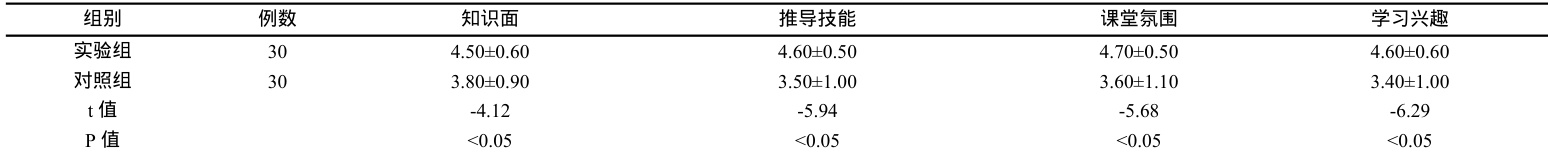 2.1 两组学生教学问卷调查结果进行教学效果对比,实验组数值均高于对照组(P<0.05).>