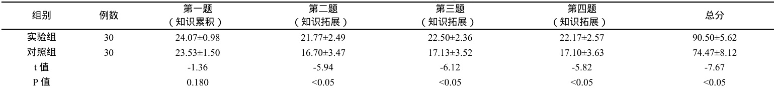 统计学差异( P=0.180 ),知识拓展题,实验组分数高于对照组( P<0.05; ,两组总分对比实验组分数高于对照组(