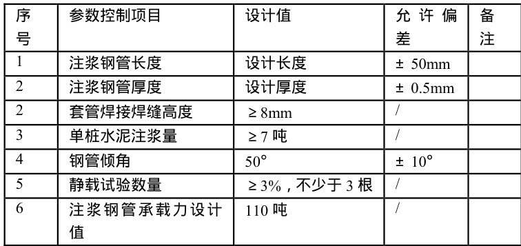 5)加强钢管的施工管理。单根钢管材料运送至现场,全面检验平整度、焊缝、垂直度等技术参数,达不到设计要求的材料退场处理。质量员填写每根成桩、注浆记录,做好施工日记。