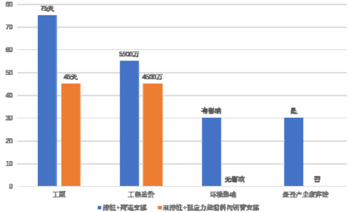 3)环保层面:双排桩 + 预应力超前斜向竹节式钢管支撑施工基本无废弃混凝土产生,底下结构施工结束后拆除钢管对周边环境无任何影响。