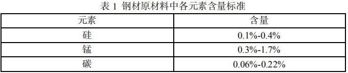A 公司铁路货车焊接式构架承载所选择的原材料需要经过专业检验,以钢材为例,保证钢材原料中硅、锰、碳等元素在规定范围内(如表 1)。此外,焊接材料在存储过程中,需要放在通风、干燥仓库内,防止焊条受潮影响焊接质量[3]。