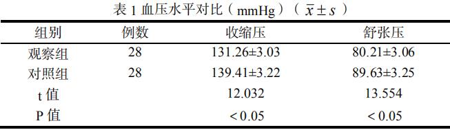 经过检测数据分析看,在护理后,观察组患者收缩压、舒张压均低于对照组(P<0.05)。