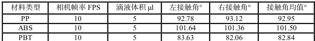 ,ABS 材料接触角平均值为