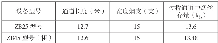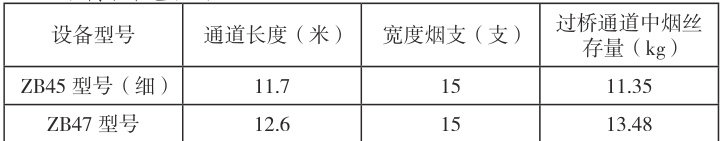 过桥通道烟丝量难以通过常规方式获取。小组成员根据设备型号差异,将设备分为 ZB25、ZB45(粗支)、ZB45(细支)和 ZB47 型号,测量通道长度,计算烟支数量和烟丝重量。
