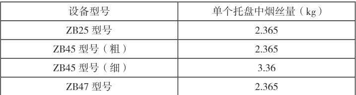 针对粗支烟和细支烟托盘,采用称重法测量烟支数量,结合单支烟重量确定不同型号托盘烟丝量。如ZB25、ZB45(粗)、ZB47 型号托盘中烟支数量约为 4300 支,ZB45(细)型号约为 9600 支。