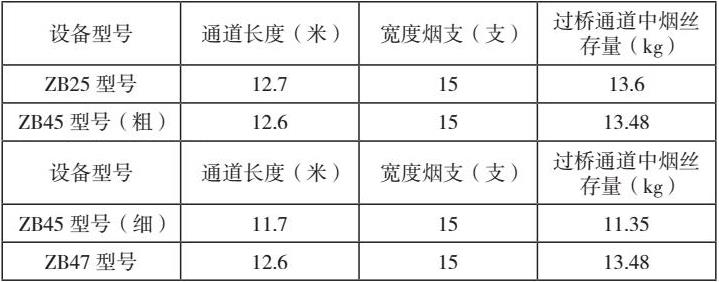 过桥通道烟丝量难以通过常规方式获取。小组成员根据设备型号差异,将设备分为 ZB25、ZB45(粗支)、ZB45(细支)和 ZB47 型号,测量通道长度,计算烟支数量和烟丝重量。