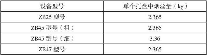 针对粗支烟和细支烟托盘,采用称重法测量烟支数量,结合单支烟重量确定不同型号托盘烟丝量。如 ZB25、ZB45(粗)、ZB47 型号托盘中烟支数量约为 4300 支,ZB45(细)型号约为 9600 支。