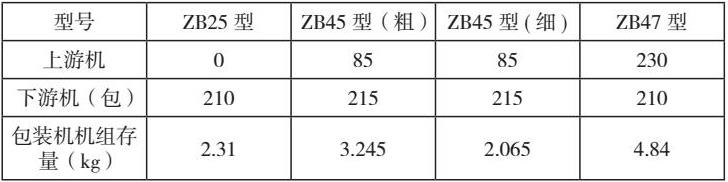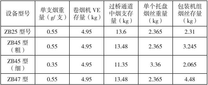 包装机有 ZB25、ZB45、ZB47 三种型号,小组成员现场计数自然停车状态下的包装机存量,根据烟支单重确定不同牌号状态下的包装机内储烟量。