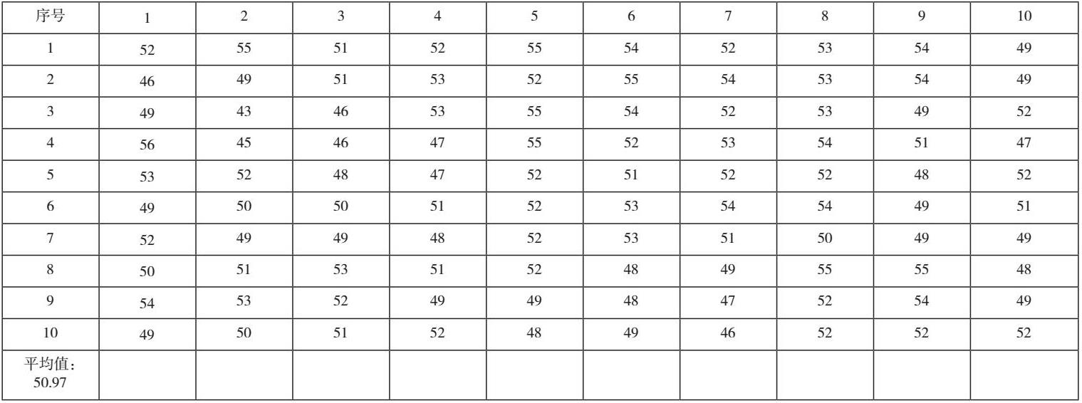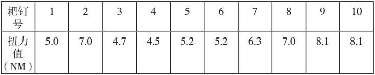 试验二:清理耙钉扭矩测试。随机挑选10枚耙钉,用扭力扳手旋转样件除垢,记录扭矩数据如下: