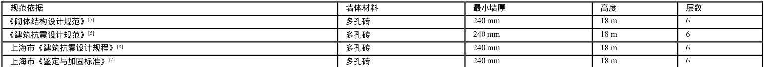 1)不同规范下多层砌体房屋的层数和高度限值见表 1。