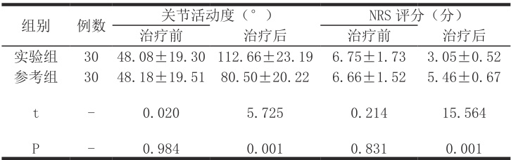 治疗前,实验组的关节活动度及 NRS 评分均呈近似水平(