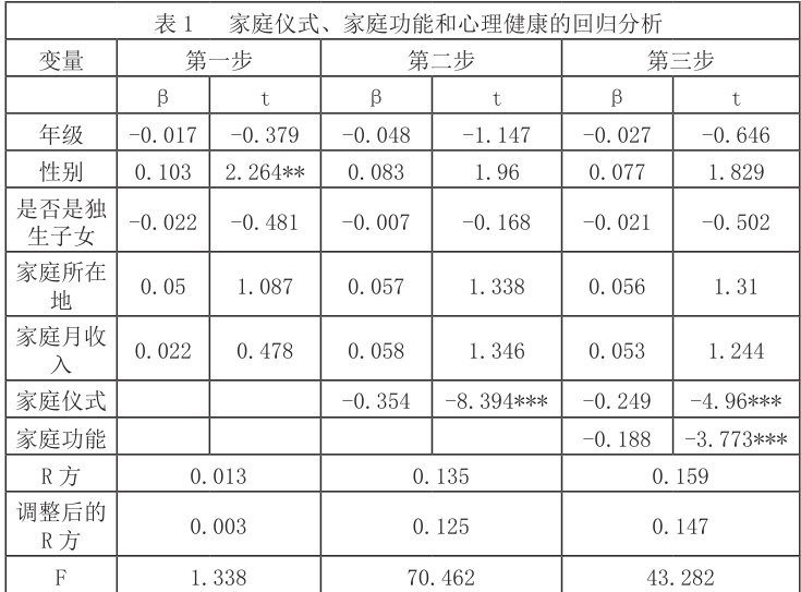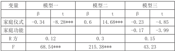 2.2 家庭仪式、家庭功能和青少年心理健康水平的回归分析