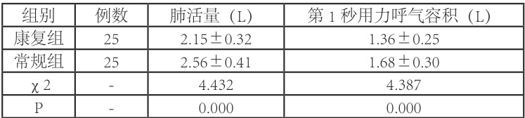 康复组患者肺功能指标高于常规组( ⋅p<0.05 )。见表1。
