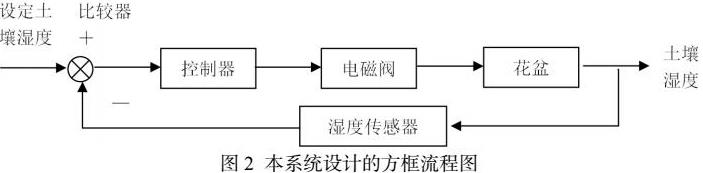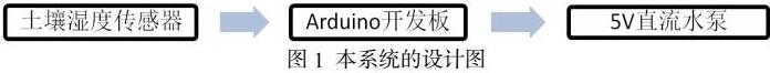设计系统方案:本设计以Arduino开发板为核心,使用湿度传感器采集花盆内土壤的湿度大小,土壤湿度值经开发板模拟端口输入到Arduino开发板,若土壤湿度值小于预设值,则水泵通电给土壤浇水;若土壤湿度值大于预设值,则水泵关闭停止给土壤浇水。