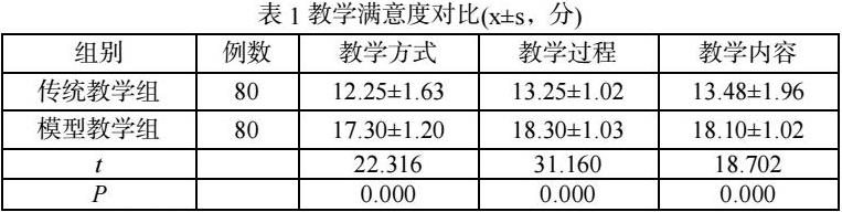 两组教学满意度对比,模型教学组高于传统教学组(P<0.05),见表1: