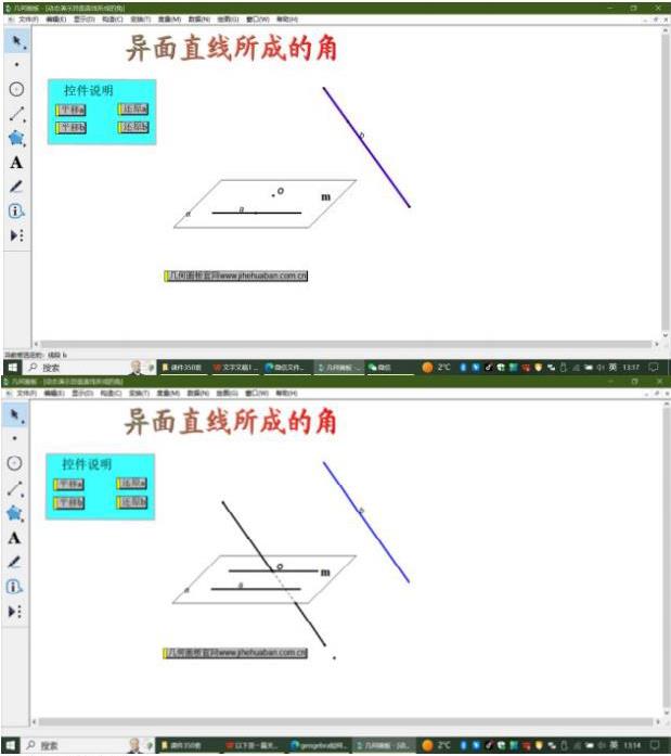 应用示例:利用几何画板演示“异面直线所成的角”的动态过程,直观展示直线平移的过程。